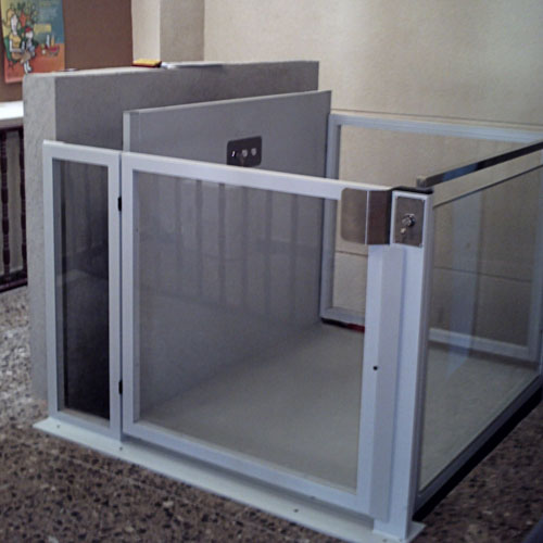 Plataforma vertical Izaro es un modelo ideal para hacer accesible edificios públicos como privados para salvar verticalmente barreras arquitectónicas.