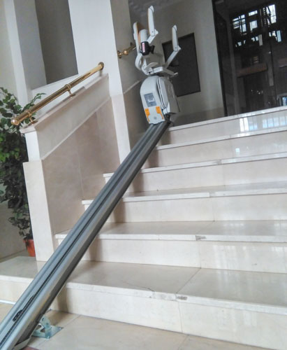 En esta comunidad de vecinos necesitaban con urgencia poder conectar la entrada de la casa con el ascensor para los residentes mayores y con movilidad reducida. Nosotros les hemos ofrecido una silla recta Acorn que nos permitió solucionar al cliente su problema de movilidad en tan solo 24horas.