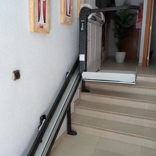 Plataforma salvaescaleras Vimec V64 instalada en un bloque de pisos en Alfafar.