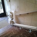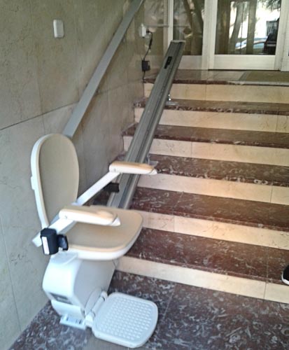 En esta instalación le hemos ofrecido al cliente una silla Acorn Recta para poder superar los pocos escalones que separan el nivel de la calle con el acceso al ascensor.