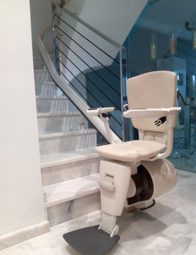 Silla salvaescaleras modelo Flow2 instalada en el interior de un adosado en la población de Betera (Valencia).