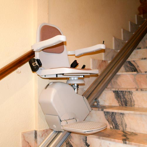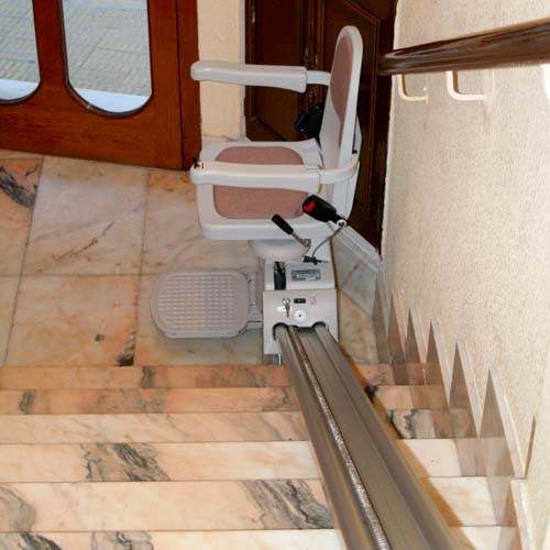 Silla elevadora Acorn Recta montada en la entrada de un piso en el municipio de Catarroja (Valencia).