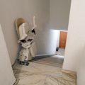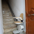 Esta silla ha sido instalada para poder salvar la estrecha escalera y poder acceder a la planta superior donde está situada la vivienda del usuario. Instalada en la parte derecha de la escalera y anclada a los escalones para no entorpecer el paso al resto de usuarios.