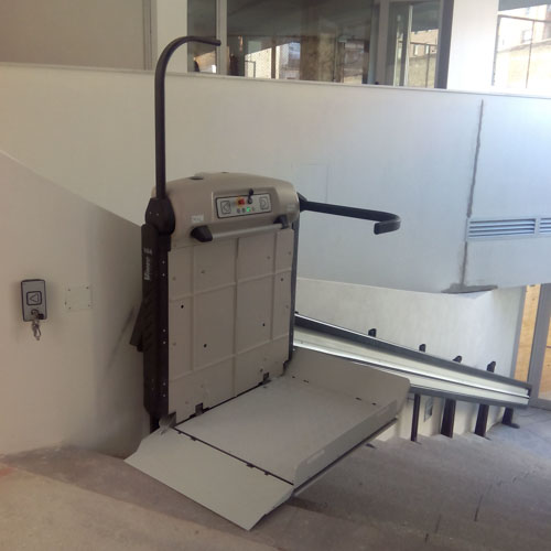 Este salvaescaleras se ha instalado para poder cumplir la normativa sobre el acceso para minusválidos en lugares públicos.