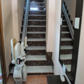 Esta silla Acorn Recta, ha sido montada en una escalera con tramo recto, se ha instalado en el lado izquierdo para poder superar el pilar que se encuentra en el lado derecho