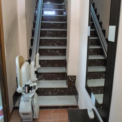 Esto ha sido posible gracias al poco espacio requerido por esta silla, adaptándose sin problemas a la anchura de la escalera siendo, compacta. elegante y segura.