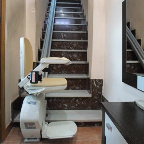 Silla salvaescaleras montada en una casa en la localidad de Montaverner en la provincia de Valencia.