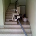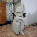 Silla salvaescaleras Curve instalada en una vivienda particular de Palma de Gandía. En este caso nos encontramos con una escalera que se estrecha mucho al inicio debido a un pilar. Gracias al poco espacio requerido para la instalación de la silla Curve ha sido posible dar acceso a su propietario a su dormitorio.
