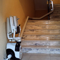 En esta instalación nos encontramos una parte de la escalera ancha al principio y que se va estrechando, por eso hemos elegido el modelo flow2 porque este modelo es capaz de superar todo tipo de curvas, gira sobre sí mismo reduciendo al máximo el ancho de la escalera.