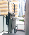 Plataforma salvaescaleras instalada en un apartamento de la playa de Tavernes de la Valldigna (Valencia).