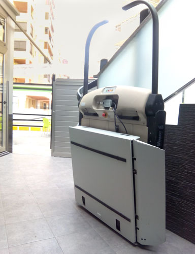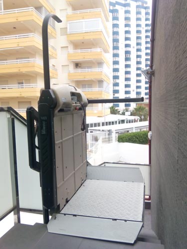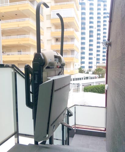 Plataforma salvaescaleras instalada en un apartamento de la playa de Tavernes de la Valldigna (Valencia).