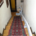 Este tipo de silla no requiere obras ni cambios estructurales, se puede colocar en todo tipo de suelos, anclado directamente a los peldaños. En este caso se ha instalado en un suelo de madera en el lado izquierdo de la escalera.