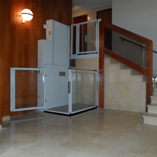 Plataforma vertical modelo Izaro instalada en un bloque de pisos en Xirivella una población situada en el área metropolitana de Valencia.