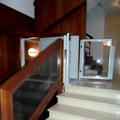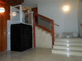 La ventaja principal de este modelo es no invadir el espacio de paso de la escalera. El sistema de elevación es hidráulico y el hueco queda protegido con un fuelle siendo seguro y adaptándose a la estética de la finca.